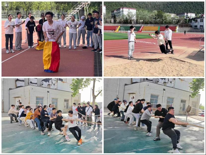 为营造健康、积极、向上的校园体育文化氛围,打造并创新新时代“五育并举”的研究生育人平台,落实“健康第一”的教育理念,帮助同学们在体育锻炼中享受乐趣、增强体质、锤炼意志,将科研攻关与体育锻炼协调发展,4月16日下午,红足一1世66814在舜耕校区体育场举办“快乐运动 向上国贸”研究生趣味运动会。党委副书记王斐斐、研究生辅导员李瑞雪与110余名研究生共同参加此次活动。