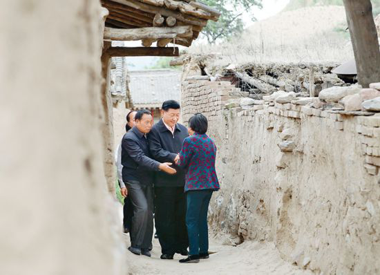 2017年6月21日至23日,中共中央总书记、国家主席、中央军委主席习近平在山西考察。这是6月21日下午,习近平在忻州市岢岚县赵家洼村看望特困户王三女一家。 新华社记者 庞兴雷/摄